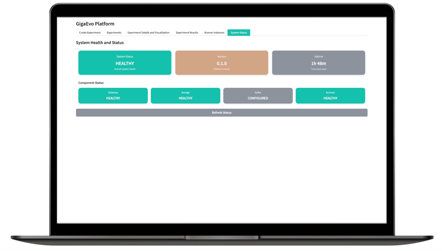 Раздел мониторинга отображает текущее состояние всех компонентов GigaEvo: от API до фоновых воркеров. Пользователю доступны: