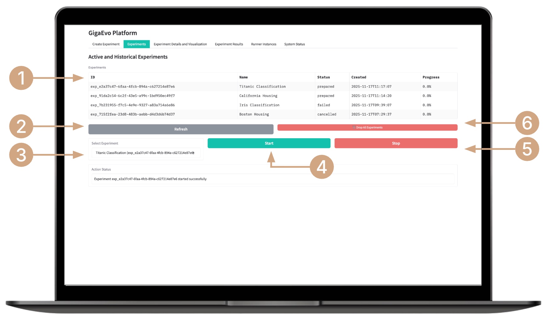 • WebUI работает на порту 7860, предлагая пользователям браузерный интерфейс для создания экспериментов и мониторинга их прогресса в реальном времени.